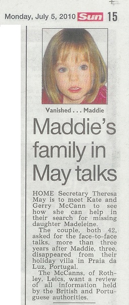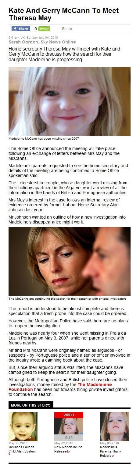 between Theresa May and the McCanns - mirrors many similar reports that have appeared in the UK media. It has been included