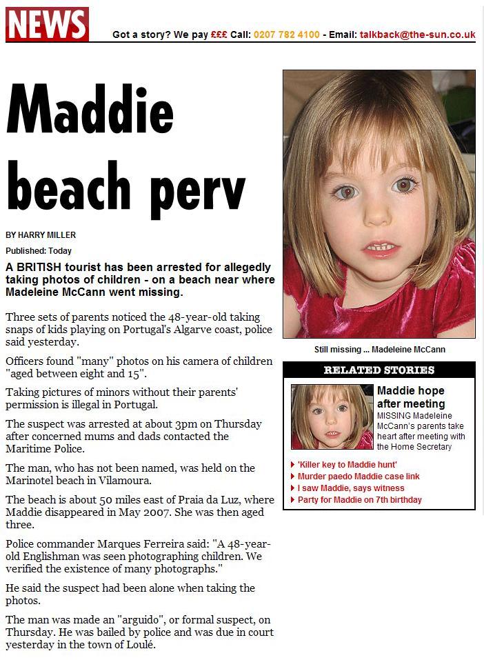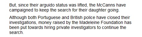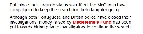 continuing search for Madeleine. The original version (screenshot below) even contained a hotlink to The Madeleine Foundation