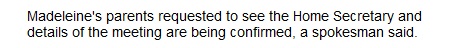 Madeleine's parents requested to see the home secretary and details of the meeting are