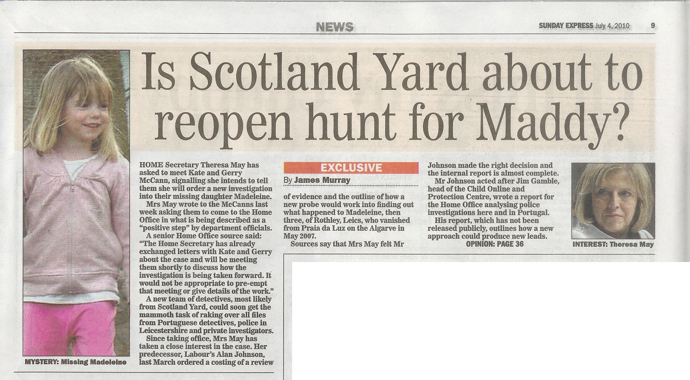 Maddy case may be re-opened by Theresa May, 04 July 2010