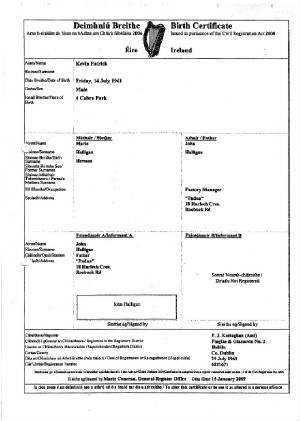 2009. The investigator said the certificate was given to him by Irish private investigator he hired to trace Halligen's