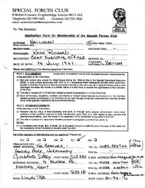 application for membership in the Special Forces Club in Knightsbridge, London. The club is an exclusive group of people with