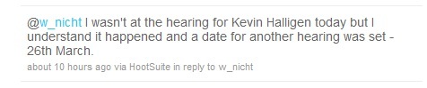 Further date set for Kevin Halligen's extradition hearing, 26 February 2010