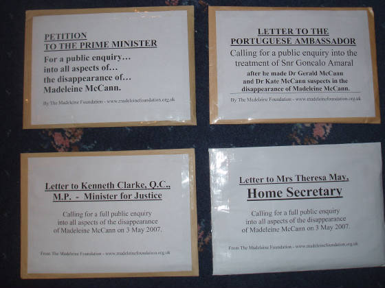 Madeleine Foundation members deliver letters 'calling for a full public enquiry into all aspects of