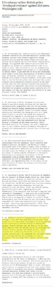 US embassy cables: British police 'developed evidence' against McCanns, Washington told, 13 December 2010