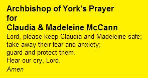 The Archbishop of York has called for renewed hope in the searches for Claudia Lawrence and Madeleine McCann.