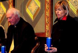mother, Joan, and attends a vigil at York Cathedral with Claudia's father, Peter.