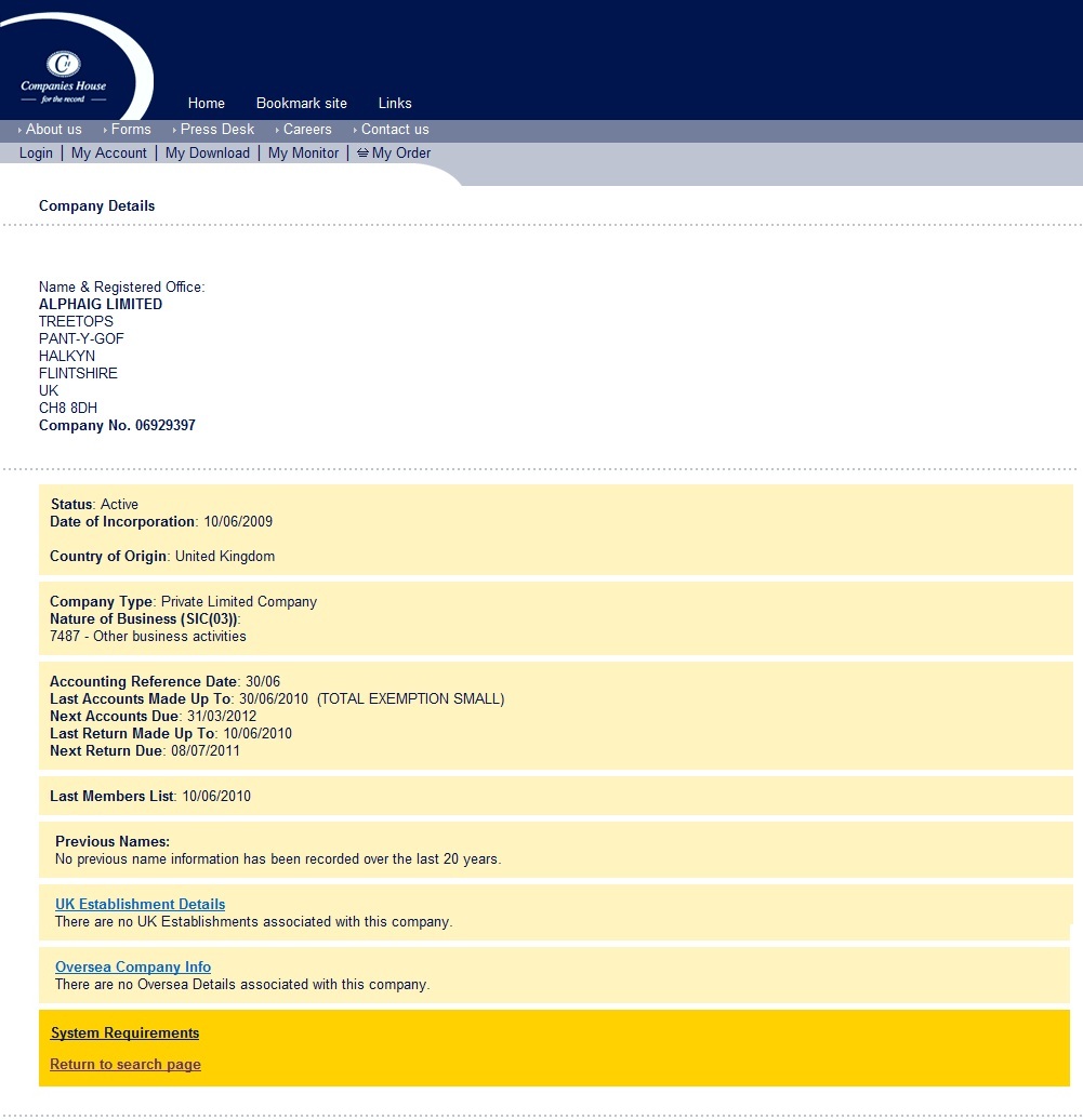 Alphaig Limited, for the period ending 30 June 2010, were signed off on 31 January 2011 and reveal surprisingly modest figures,