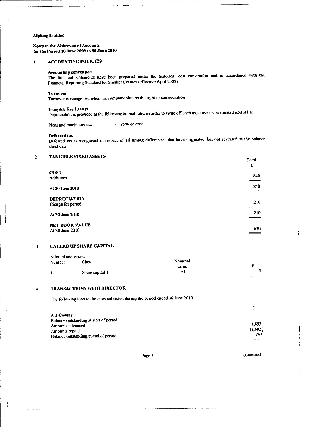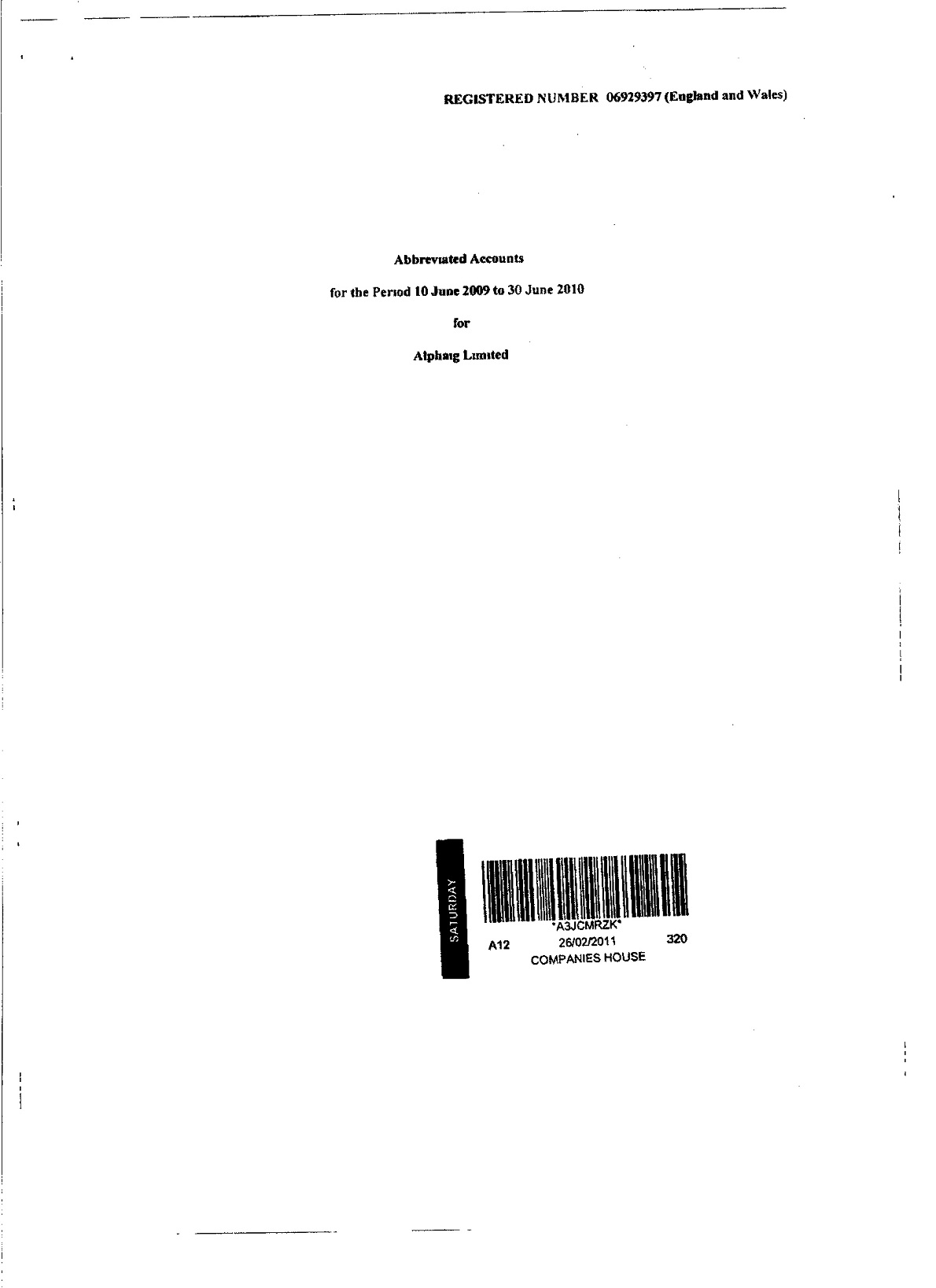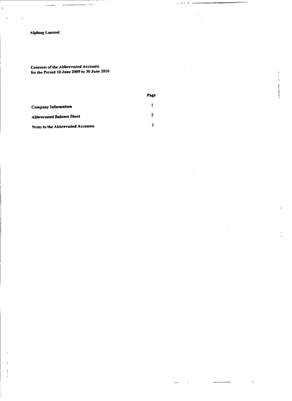 ALPHAIG LIMITED, Abbreviated Accounts: