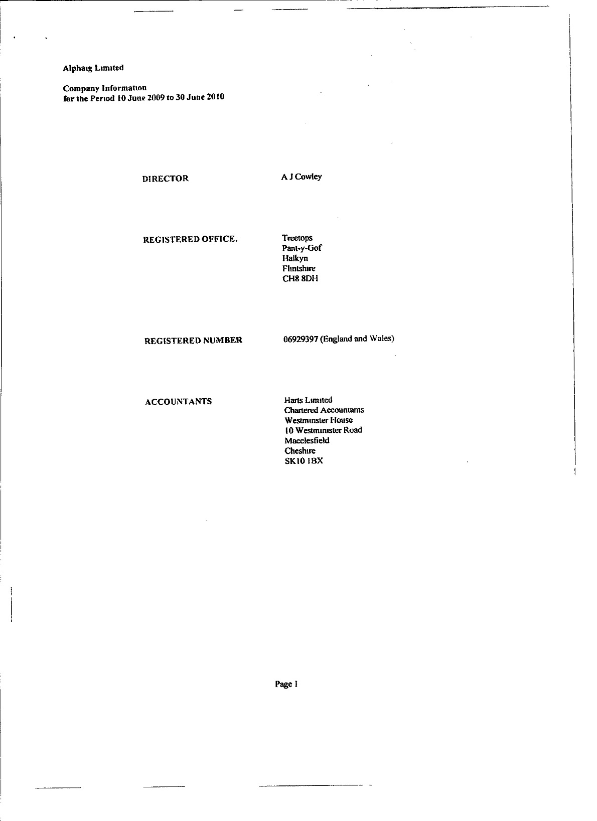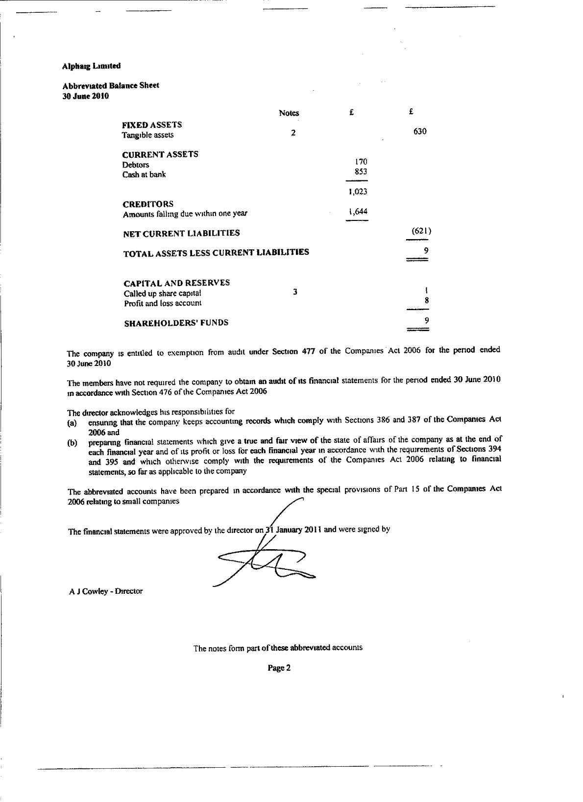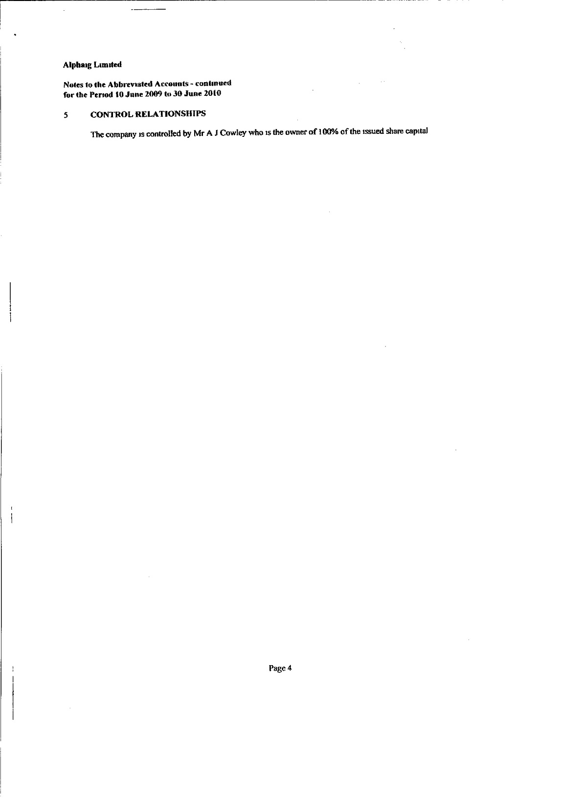 ALPHAIG LIMITED, Abbreviated Accounts: