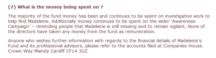 given the official FindMadeleine.com website has stated: 'The majority of the fund money has been and continues to