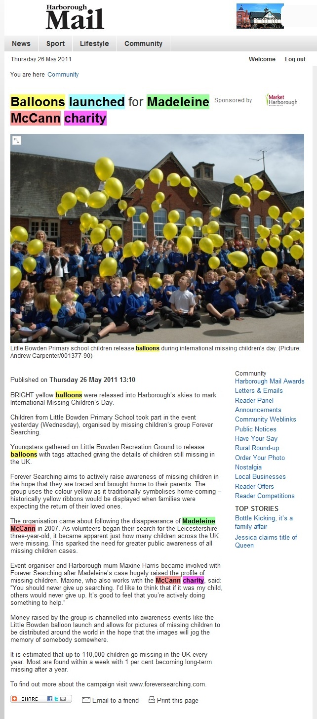 Campaign, a voluntary non profit making scheme helping to keep the search for Madeleine McCann in the public eye and raising
