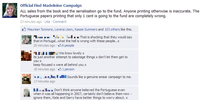 Note: This site does not belong to the McCanns. It belongs to Pamalam. If