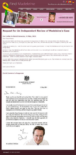 The McCanns send an open letter to British Prime Minister, David Cameron, in which they say they are 'seeking