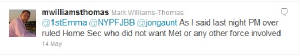 supported, I'm told, by the Association Of Chief Police Officers, but Mrs May is still not convinced.