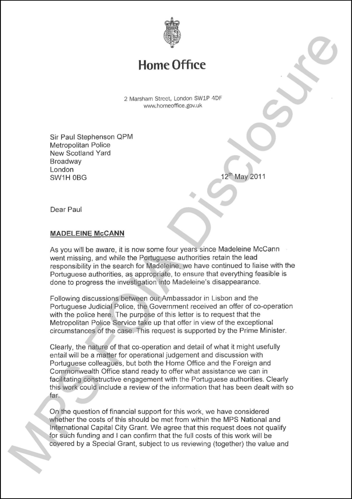 McCann, sent a letter to the English Prime Minister, David Cameron, in which they asked for a review of the case.