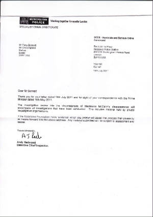 Redwood, Atten. Mr Thomas Bowen MIT5 (Madeleine McCann Review Team) Belgravia Police Station 202 Buckingham