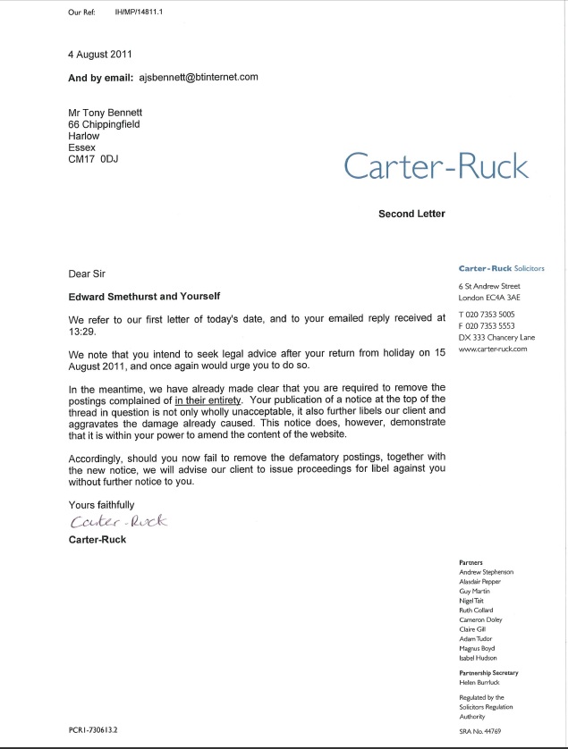 9 August when I had met all the demands of Carter-Ruck’s initial two letters of 4 August