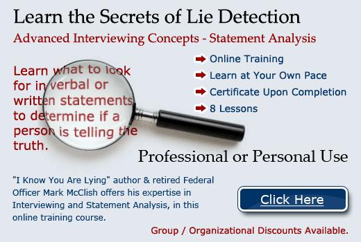 States Marshal, and an expert in detecting deception with his interviewing techniques. This is the 3rd article Mark has contributed