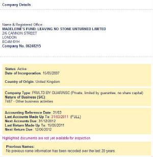 the campaign to locate Madeleine and merchandise costs in 2010-11, the accounts show.