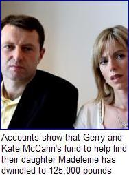 Kate and Gerry McCann's fund to help find their missing daughter Madeleine dwindled to £125,000 last year, official