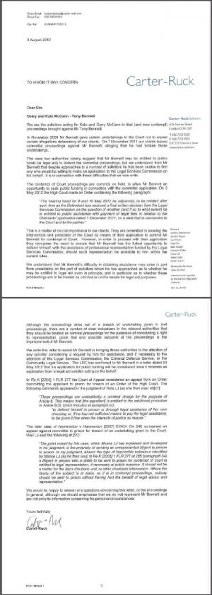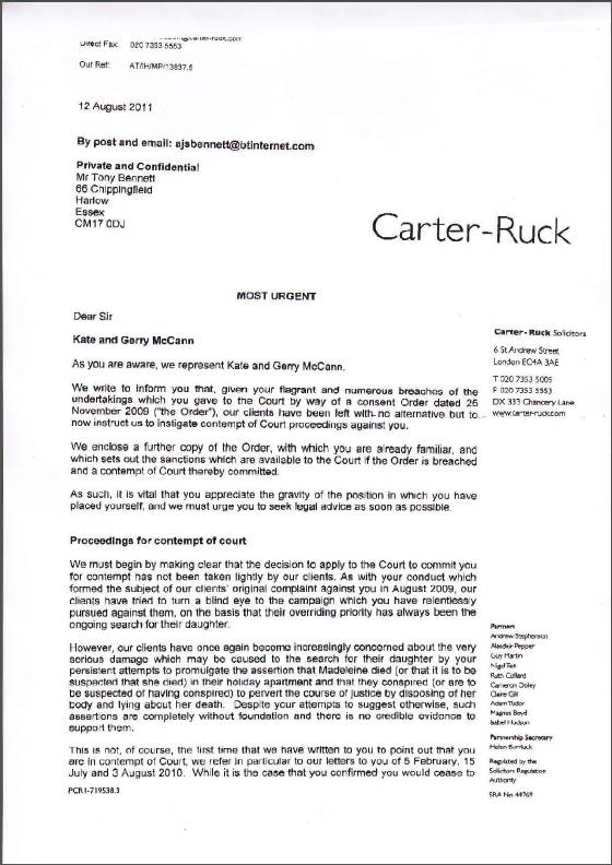 Tony Bennett's 1st letter to Carter-Ruck The Madeleine Foundation