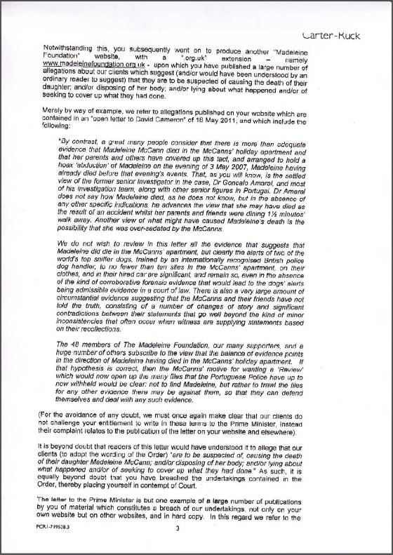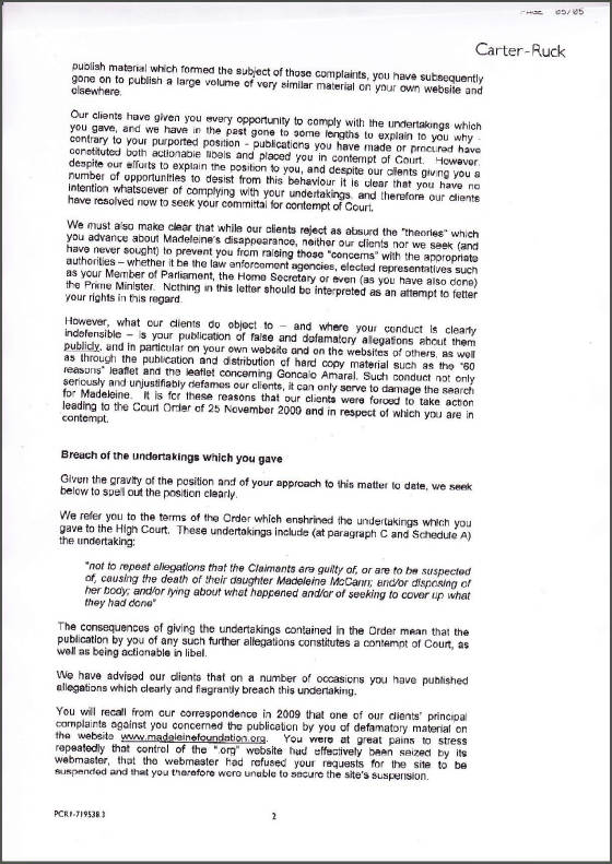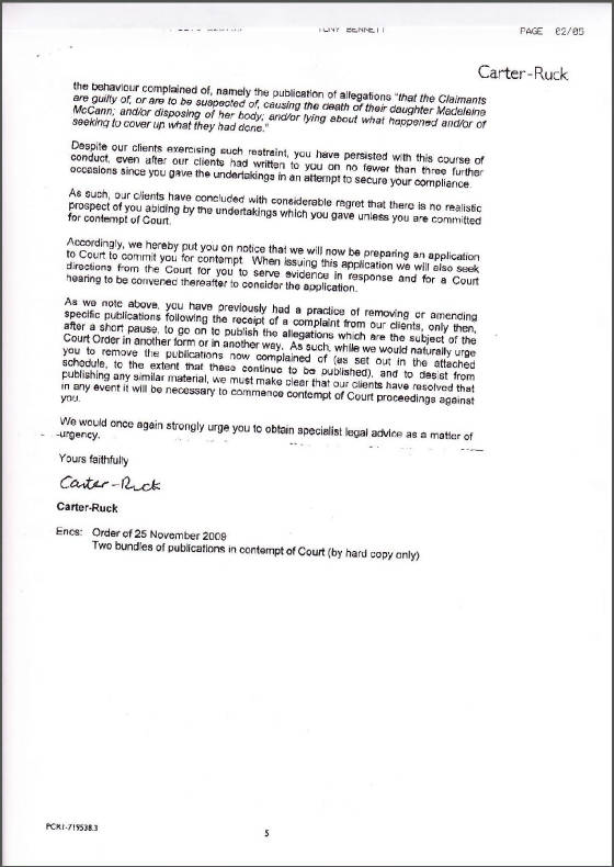 Tony Bennett's 2nd letter to Carter-Ruck The Madeleine Foundation