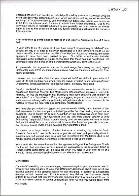 Letter from Carter-Ruck, 12 August 2011