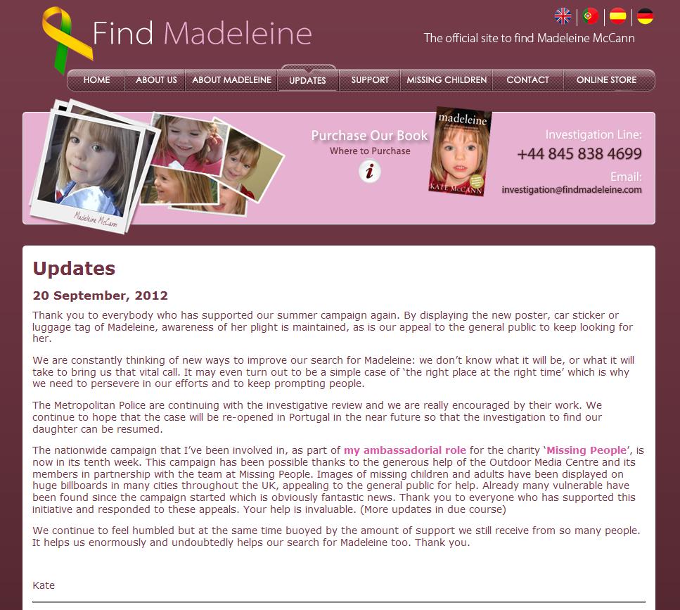 Note: This site does not belong to the McCanns. It belongs to Pamalam. If you wish to contact the McCanns directly, please use the contact/email details campaign@findmadeleine.com