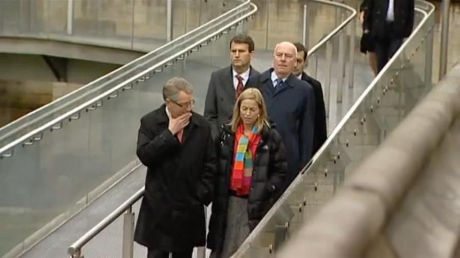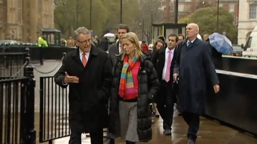 McCann have arrived at Westminster to urge the government to keep its commitments on the Leveson Inquiry, to which both families