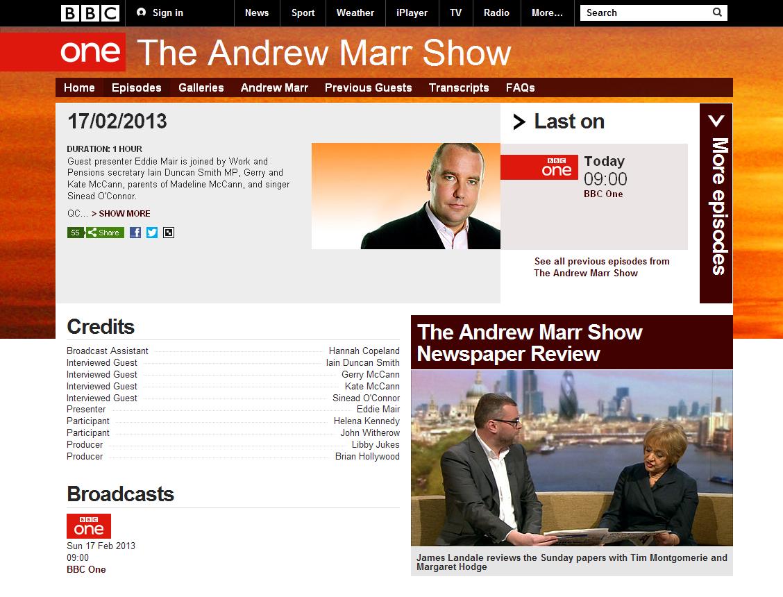17 February 2013: The McCanns are interviewed on BBC One's Andrew Marr
