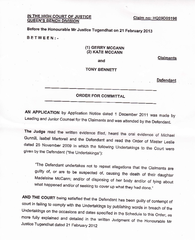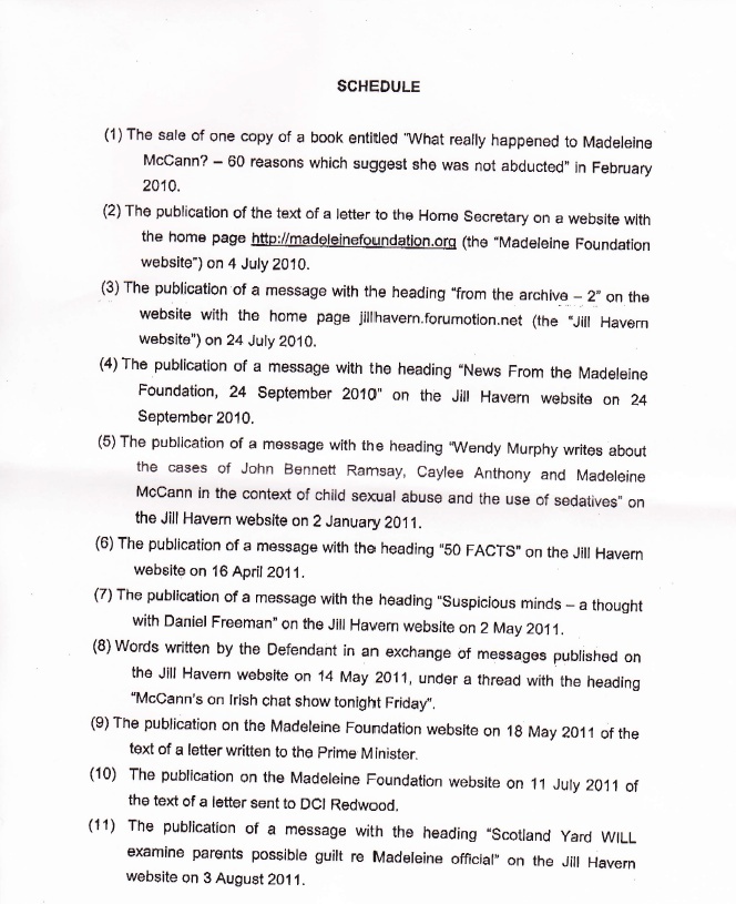 were given, and the fact that I alone face punishment for my opinions on Madeleine's disappearance. I recognise that my