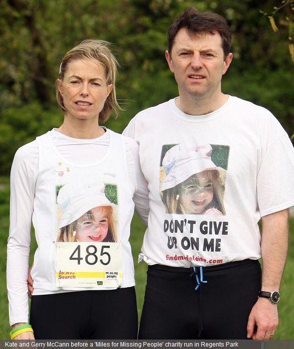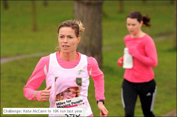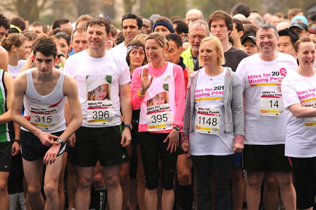 whose daughter Madeleine was abducted in Portugal, was running for the charity Missing People, cheered on by her husband Gerry