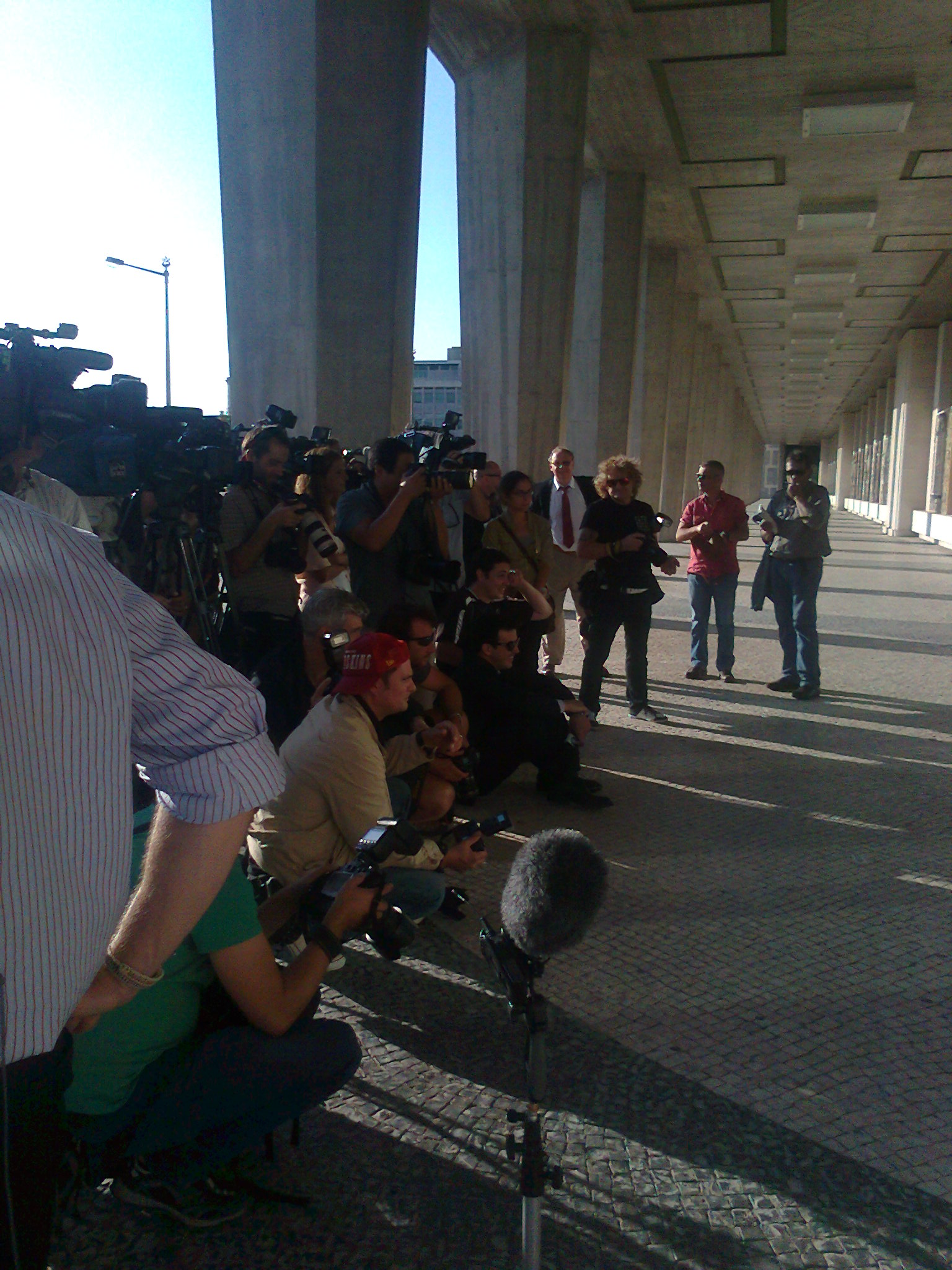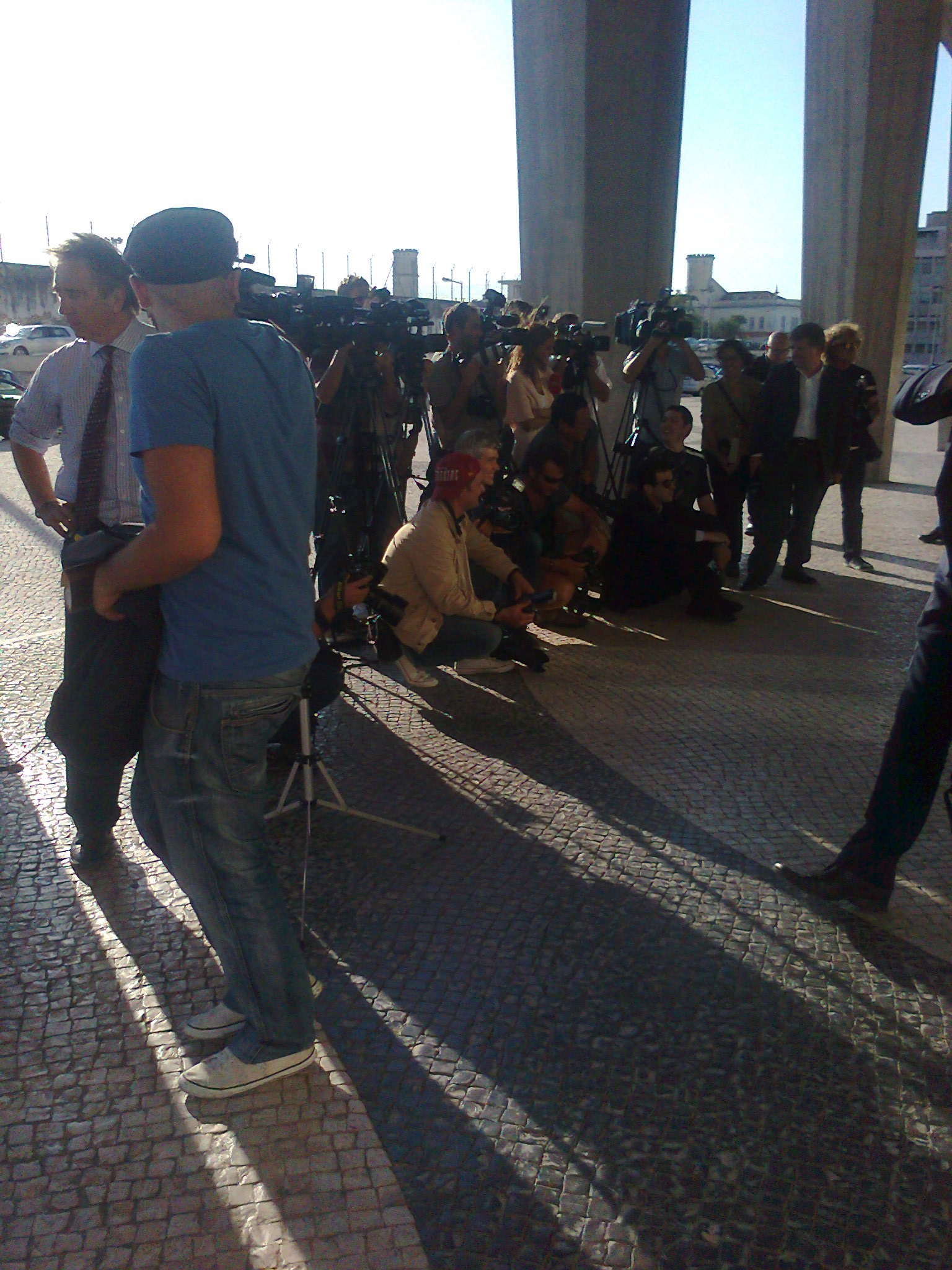 The press await the arrival of Kate McCann outside the Palace of Justice. Photo: Anne Guedes |