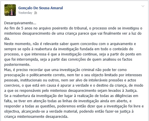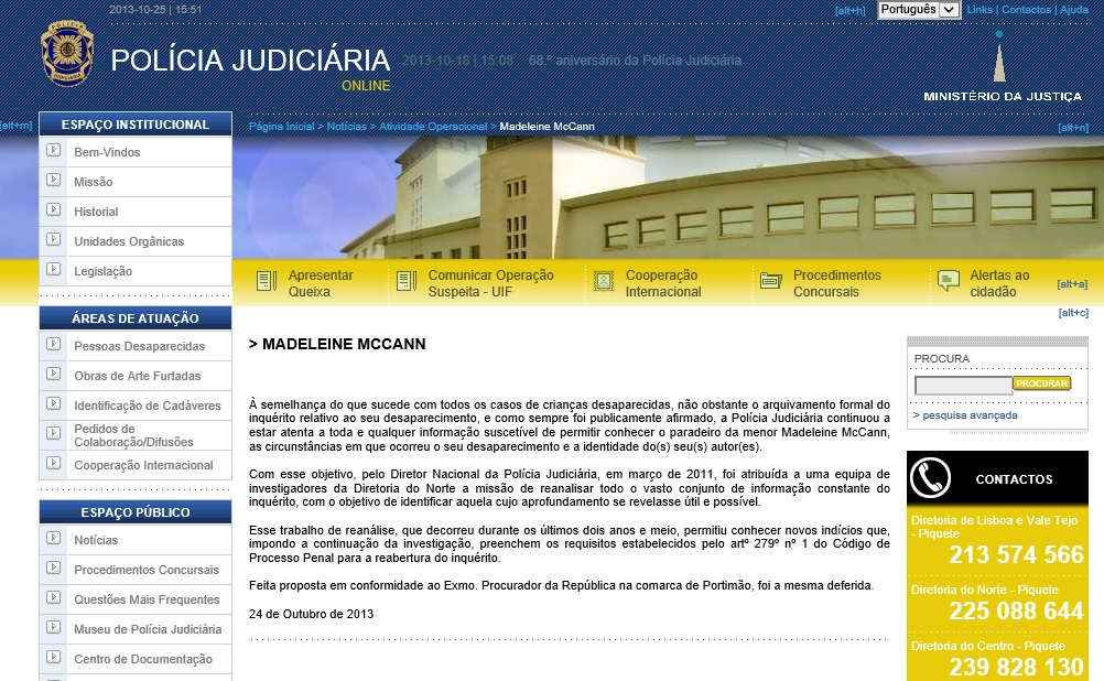 the disappearance of the English child Madeleine McCann, after the Judiciary Police presented new elements.