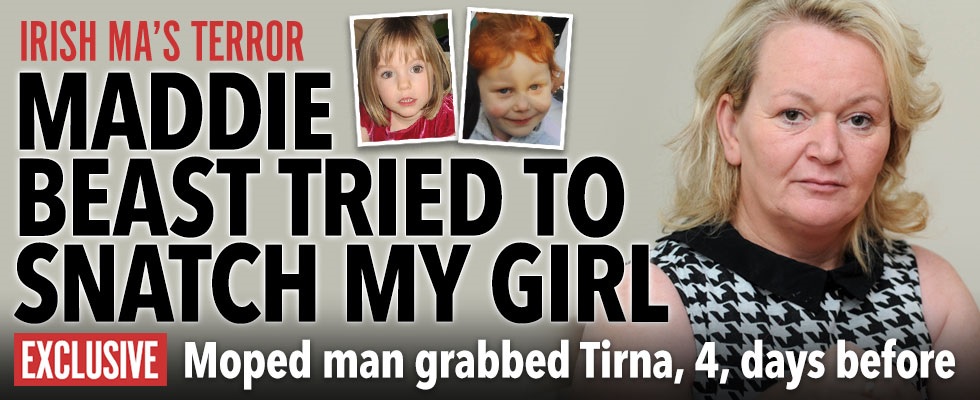 A MAN on a motorbike tried to snatch a tot yards from where Madeleine McCann vanished only weeks later, The