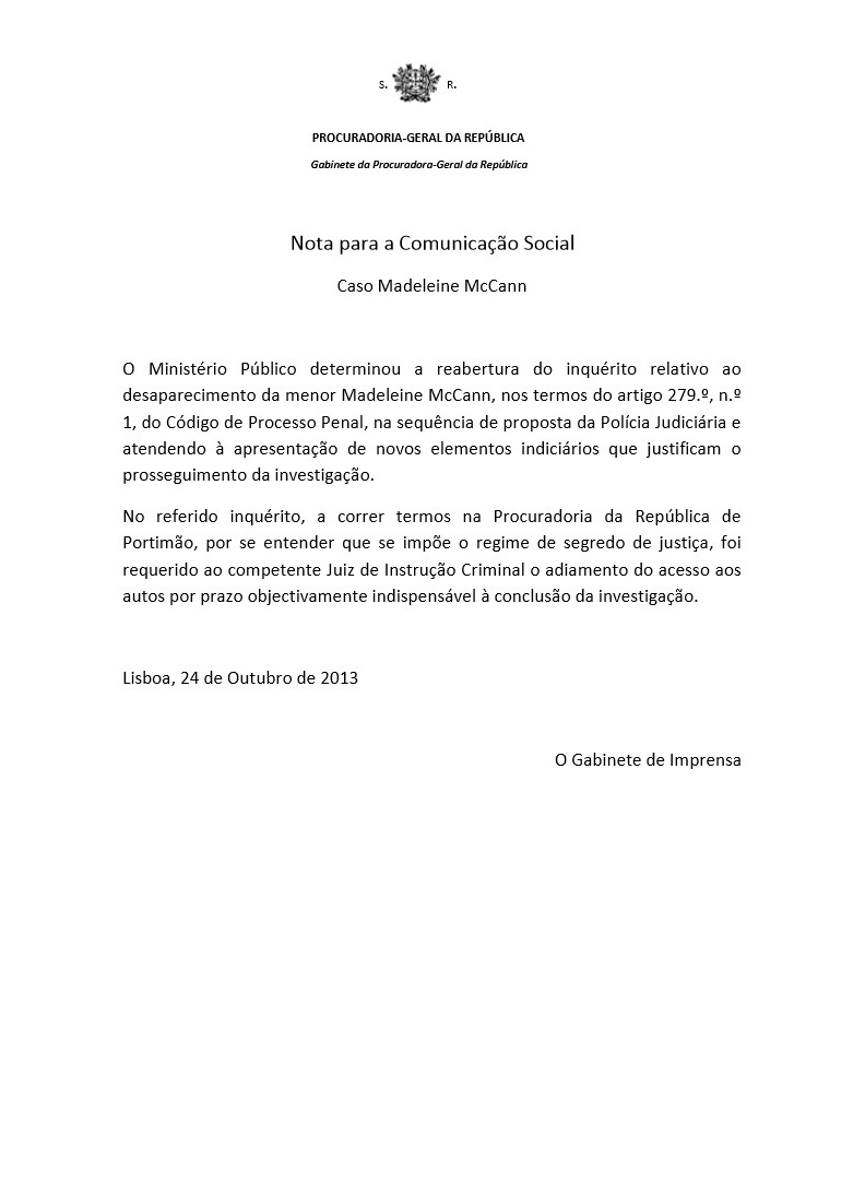 McCann's disappearance Procuradoria-Geral da República