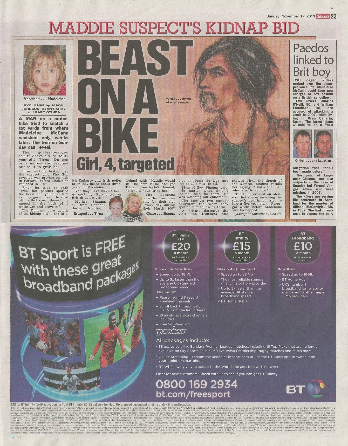 in The Sun on Sunday as: Beast on a bike targeted girl, 4, weeks before Maddie was