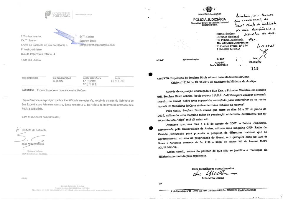were send to the Attorney General in Portugal, and the British police were informed, he was deeply disappointed that they