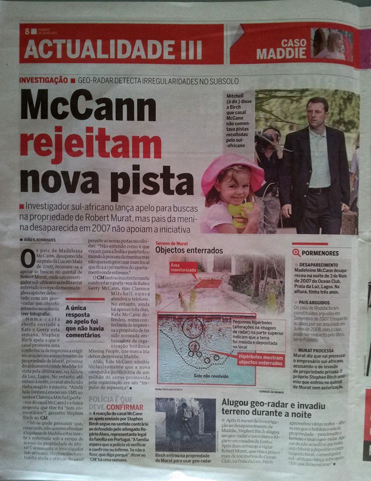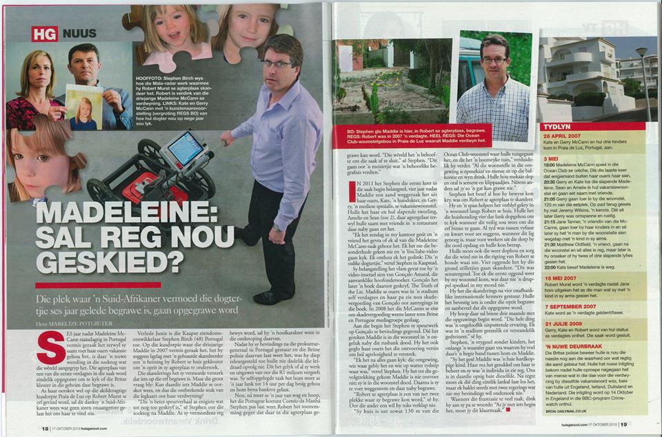 THE RECENT NEWSPAPER ARTICLE THAT INFORMED SOUTH AFRICA that Madeleine McCann is dead and buried beneath the Murat