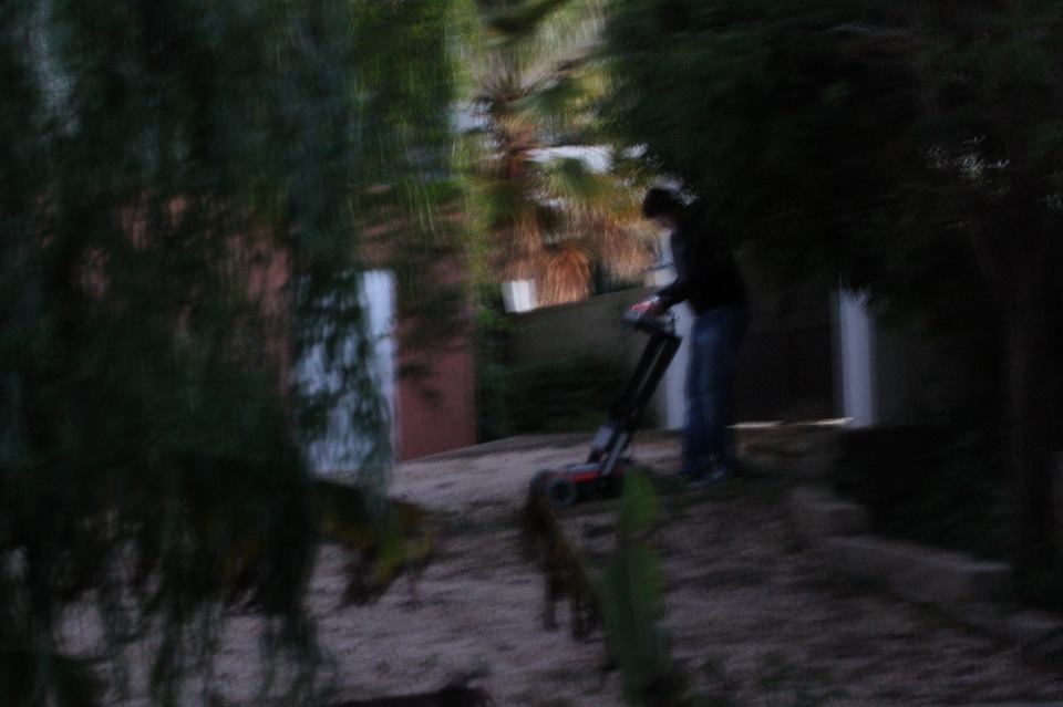 through the row of hedge like trees; the individual becomes invisible to passersby once inside the Murat property.