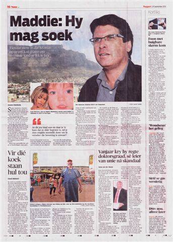 SOUTH AFRICA reports nationally on Madeleine McCann's burial site.