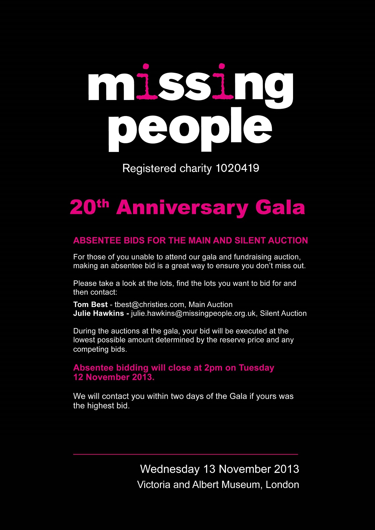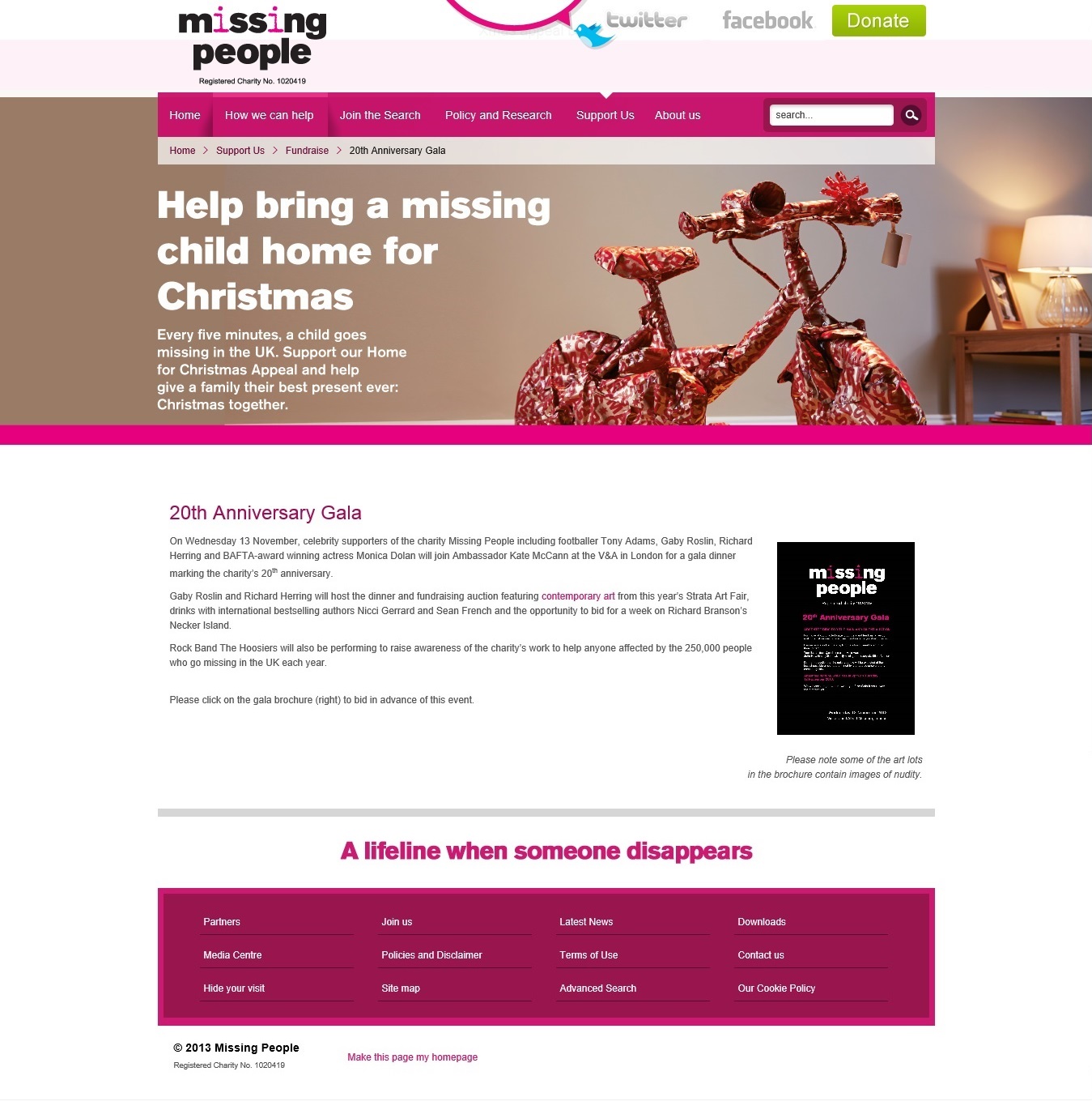 of time with the charity Missing People and I'm aware of the incredible valuable services they offer and that is why I