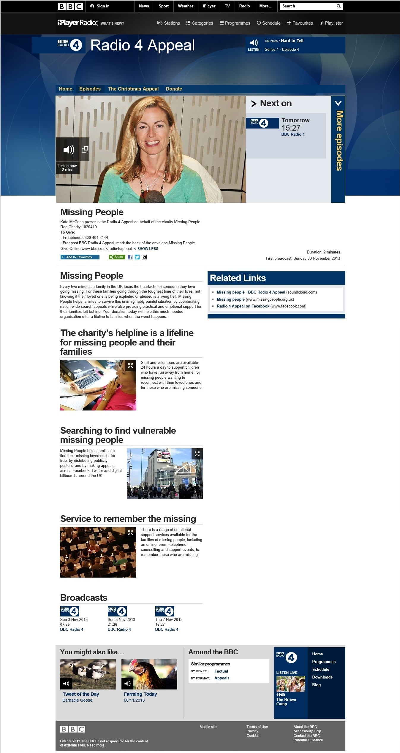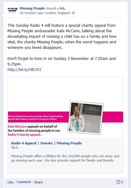 families of missing people in our Radio 4 charity appeal..., 28 October 2013