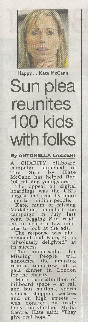 appeal for Missing People. Kate recorded this in July, before the recent BBC Crimewatch programme in connection with the Official