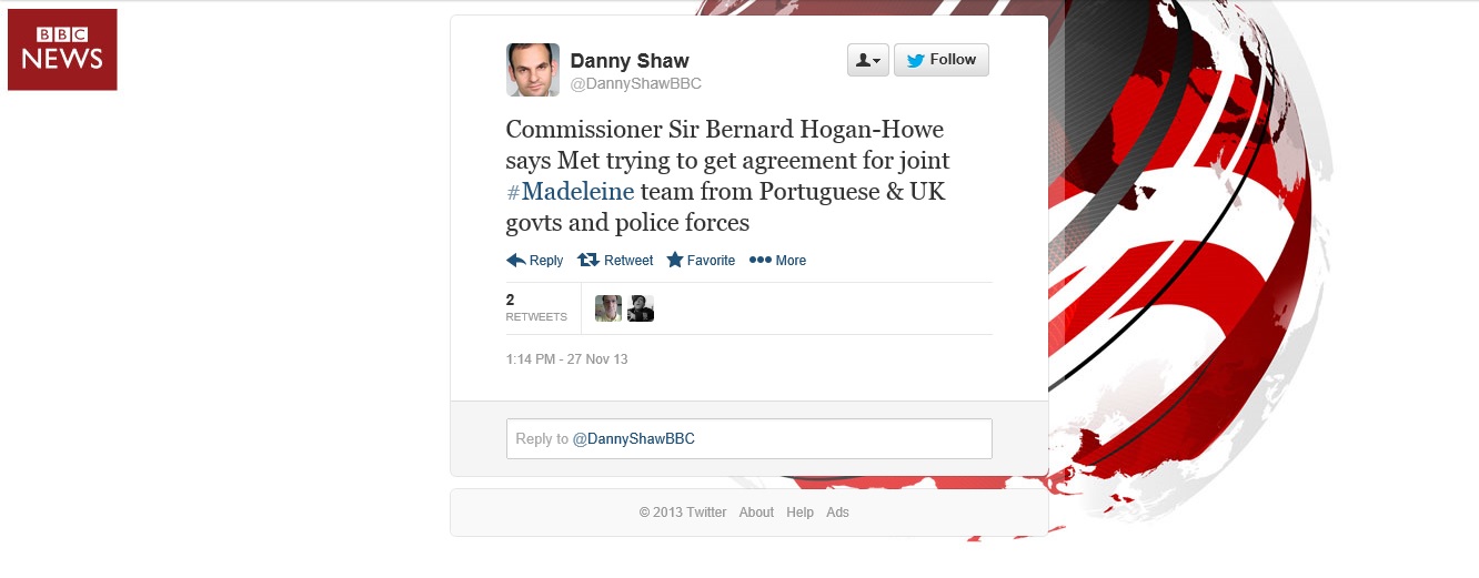 Commissioner Sir Bernard Hogan-Howe says Met trying to get agreement for joint #madeleine team from Portuguese & UK govts and police forces