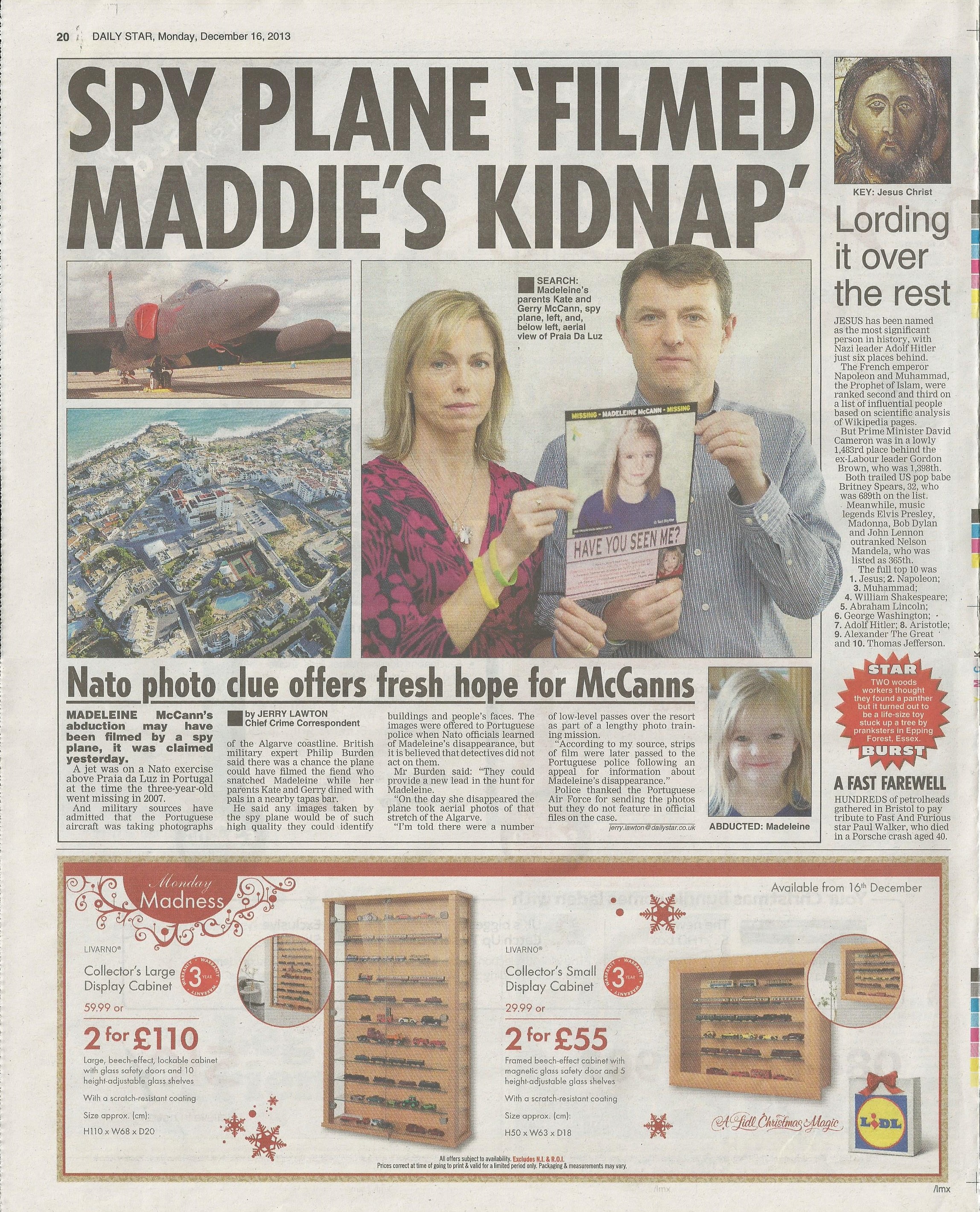 were carrying a child around when Maddy disappeared should have been investigated, 28 December 2013