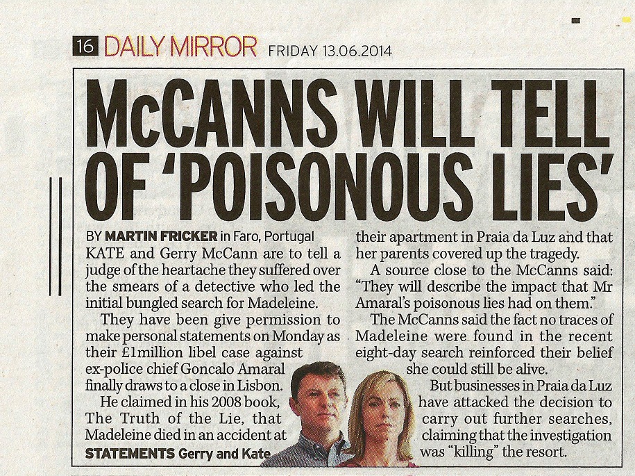 The McCanns are suing for libel over claims made in Mr Amaral's 2008 book, including suggestions