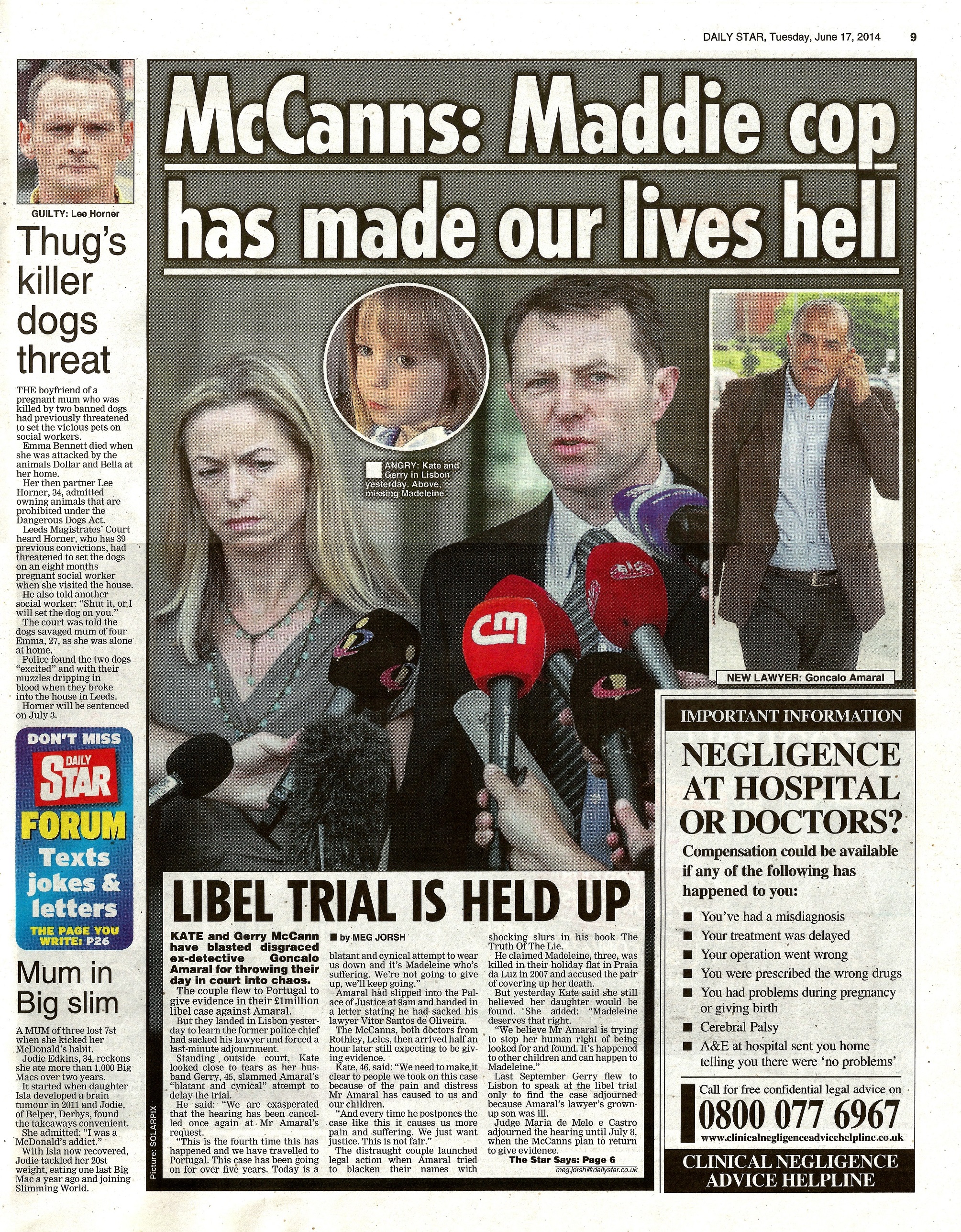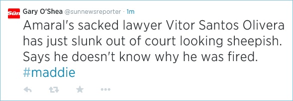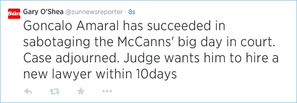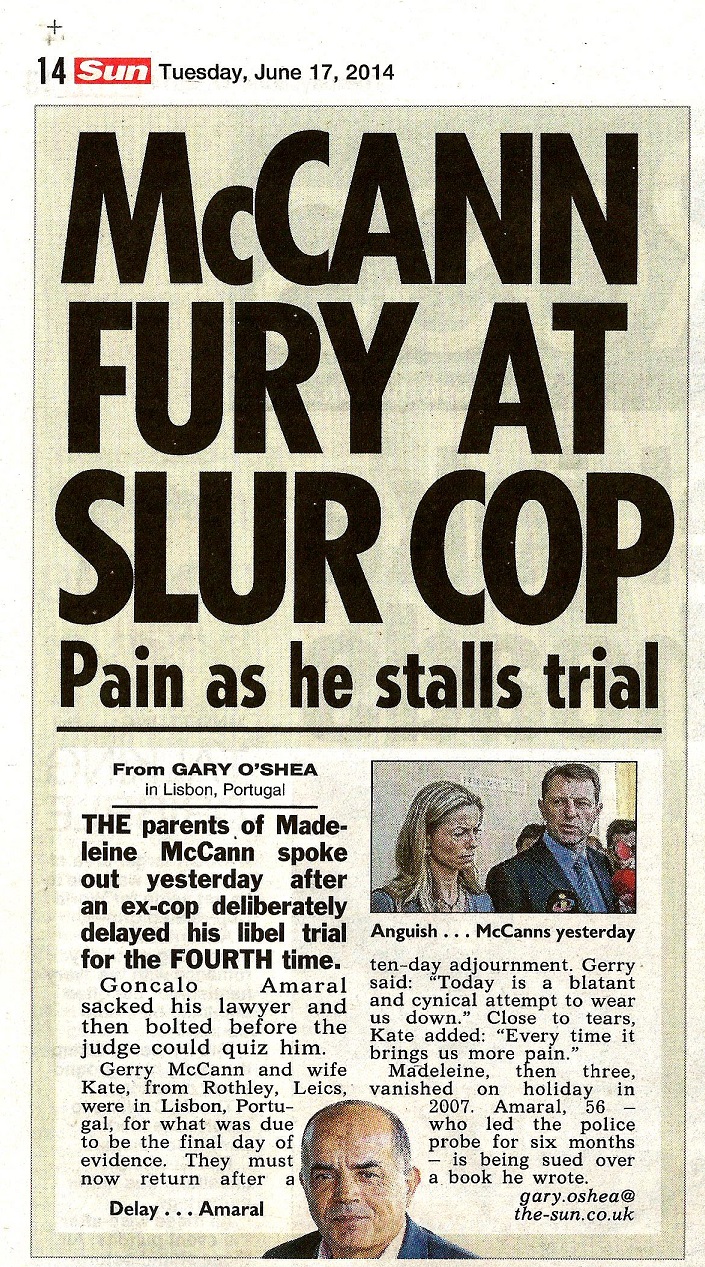 court date for closing arguments, 16 June 2014, it is revealed that Gonçalo Amaral has sacked his lawyer and the proceedings