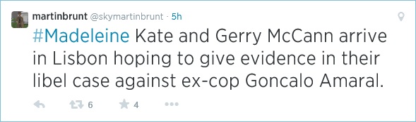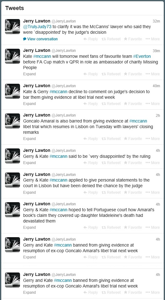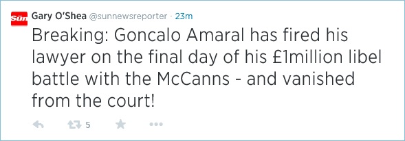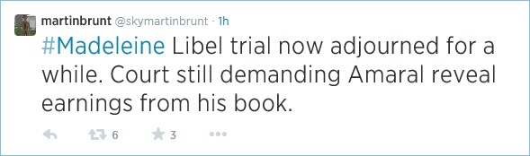 resumption of ex-cop Goncalo Amaral's libel trial next week Twitter - Jerry Lawton
